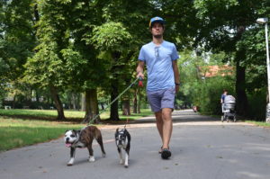 Evelína je moc hodná a není konfliktní, ale zatím se toho od Huga a ani od Davida moc nenaučila. David s maminkou, herečkou Janou Krausovou, mají dohromady čtyři psy, a když jsou spolu, tak uhlídat je, to je očistec. Každý se chová jinak, každý baští něco jiného, jeden potřebuje velkou procházku, druhý nikam nechce. „Zkusil jsem jít tři psy venčit najednou, ale to už je pro mě nadlidský výkon, to bych se i těch bobků usbíral a kam s nimi, když máte plné ruce vodítek.“ dodává David.